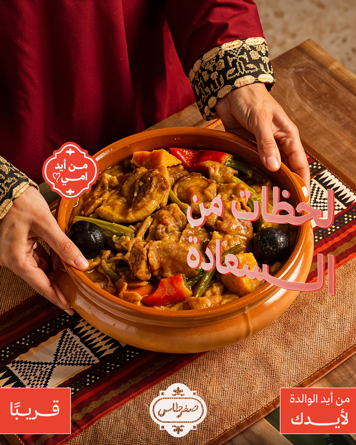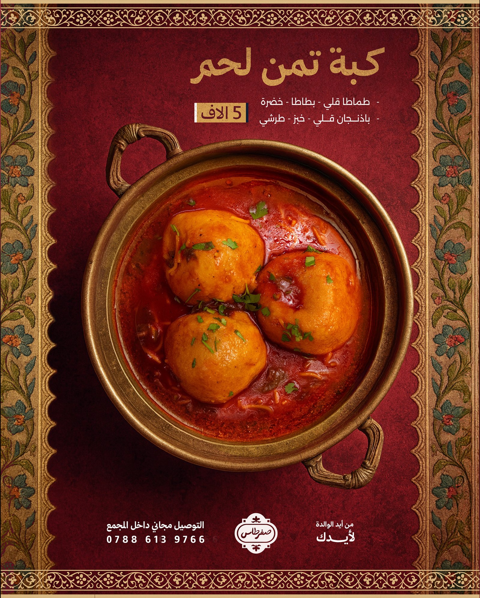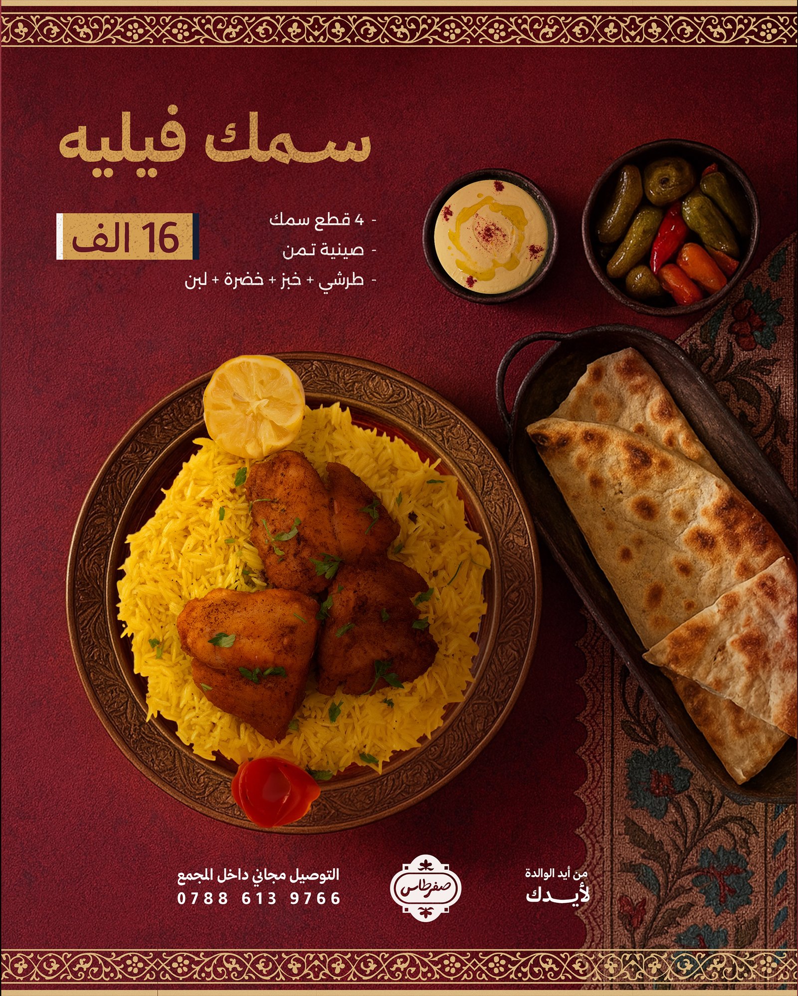 التحدي كان إبراز شخصية مطعم صفرطاس كأكل عراقي بيتي أصيل وسط سوق مليان مطاعم تستخدم ألوان وأساليب تجارية صاخبة. المطلوب تقديم هوية وتصاميم تركز على البساطة والأصالة، تعكس دفء البيت العراقي وجودة الأكل المنزلي، بدون مبالغة أو ضجيج بصري.
